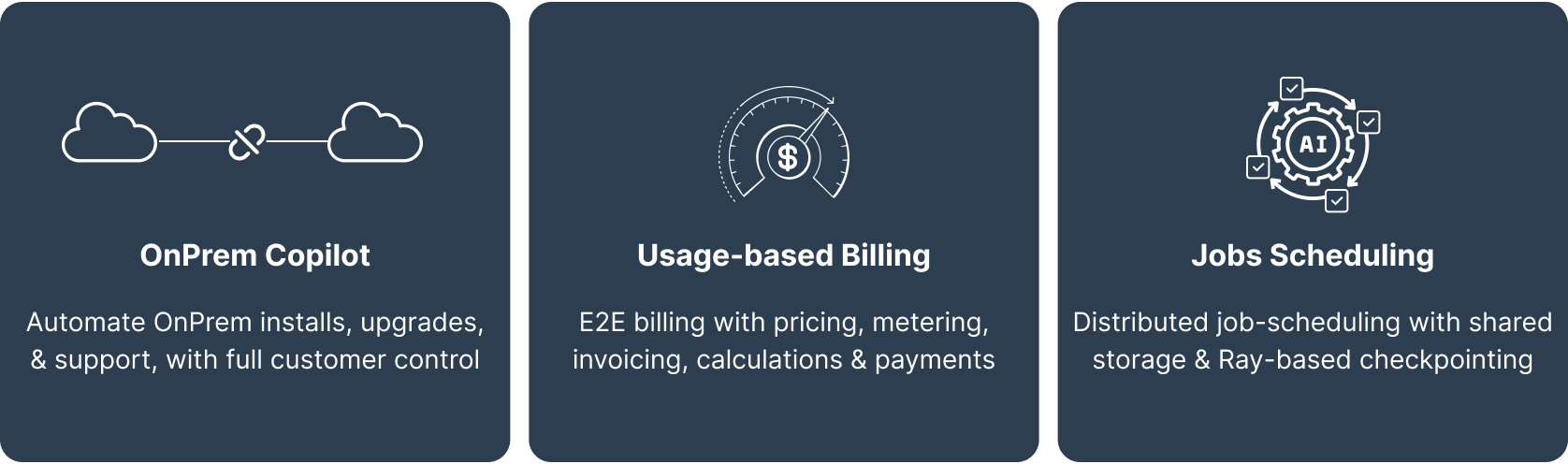 Our new AI Job Framework simplifies running distributed, long-running jobs such as model training, batch inference, and data processing. With built-in support for retries, failure handling, and detailed status tracking, it's designed to be robust and reliable out of the box. It integrates seamlessly into your product experience, allowing users to run and monitor complex workloads without managing infrastructure themselves. The framework also supports integration with frameworks like Ray for distributed model training, inference and checkpointing, enabling scalable, resilient AI workloads. Read more about our Job Controller paradigm in our technical blog.